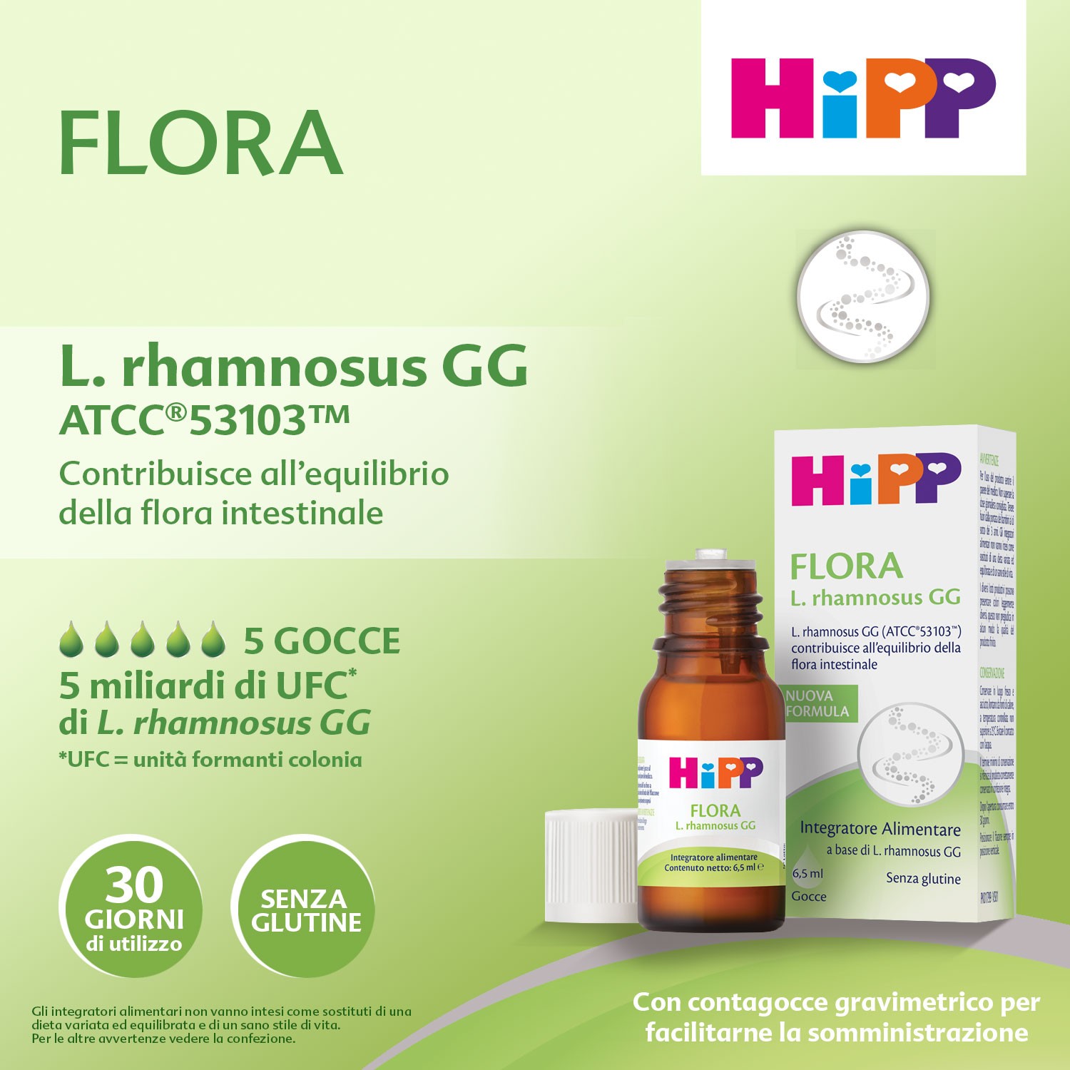 - Integratore alimentare a base di L. rhamnosus GG (ATCC®53103™) che contribuisce all’equilibrio della flora intestinale.